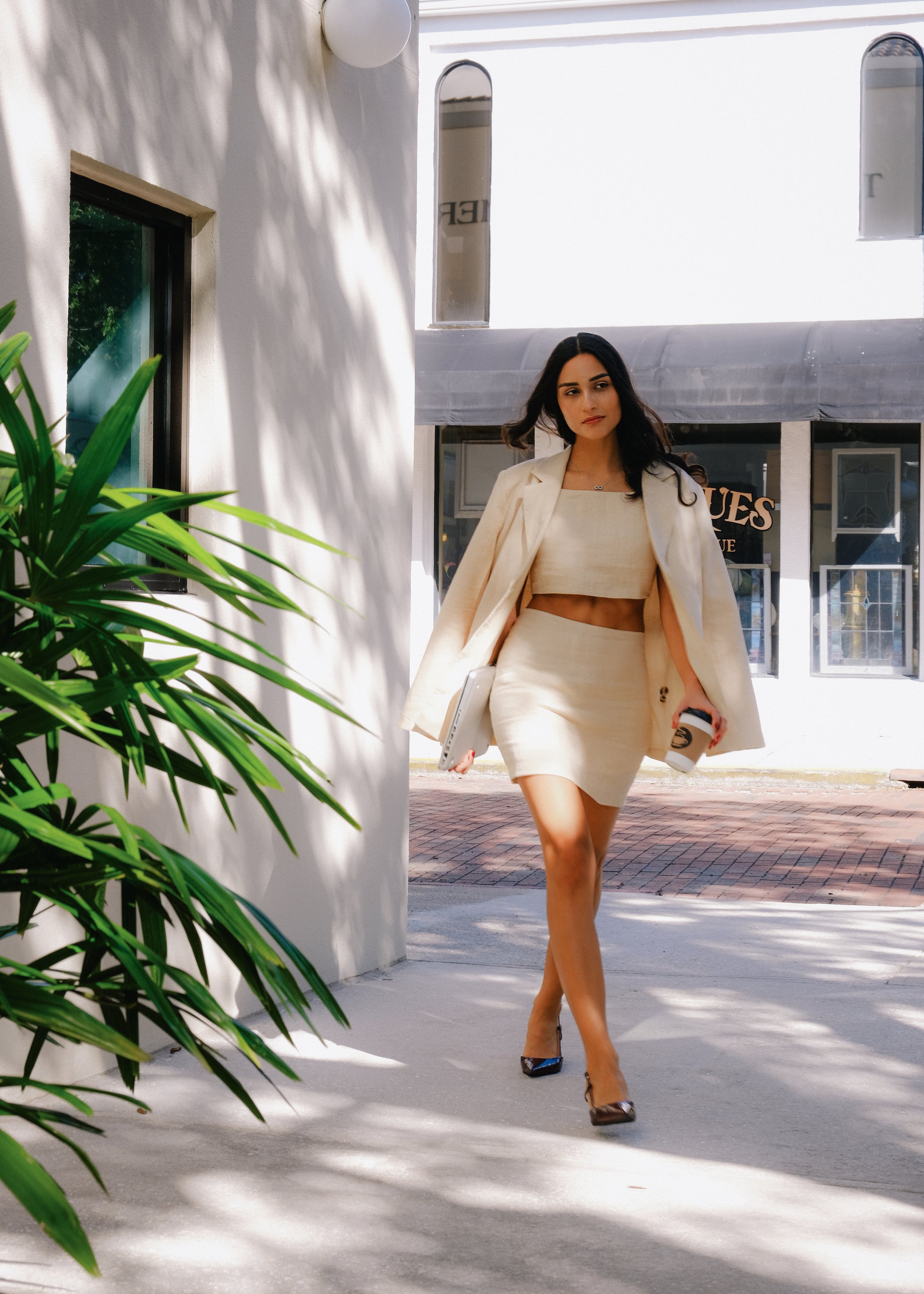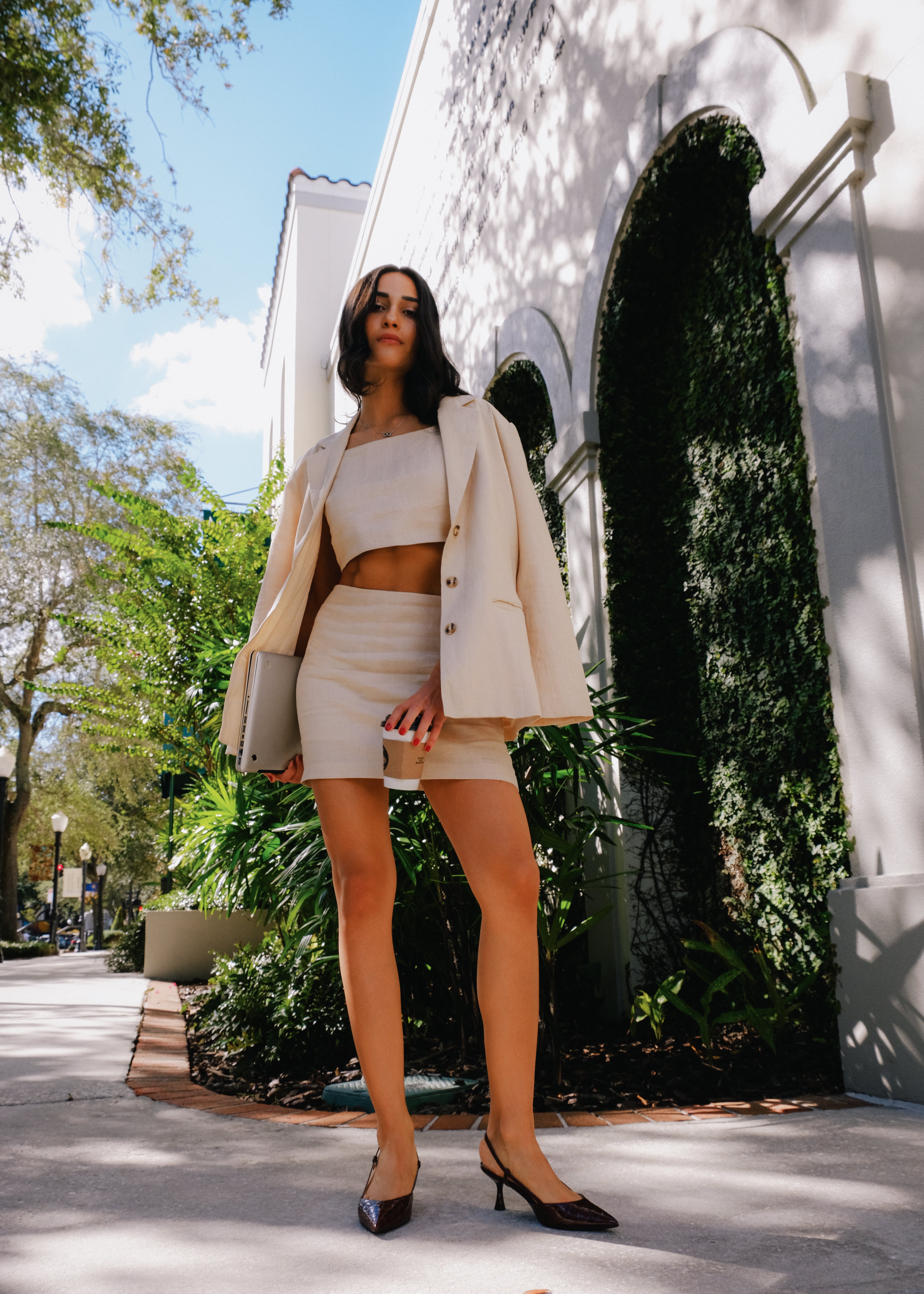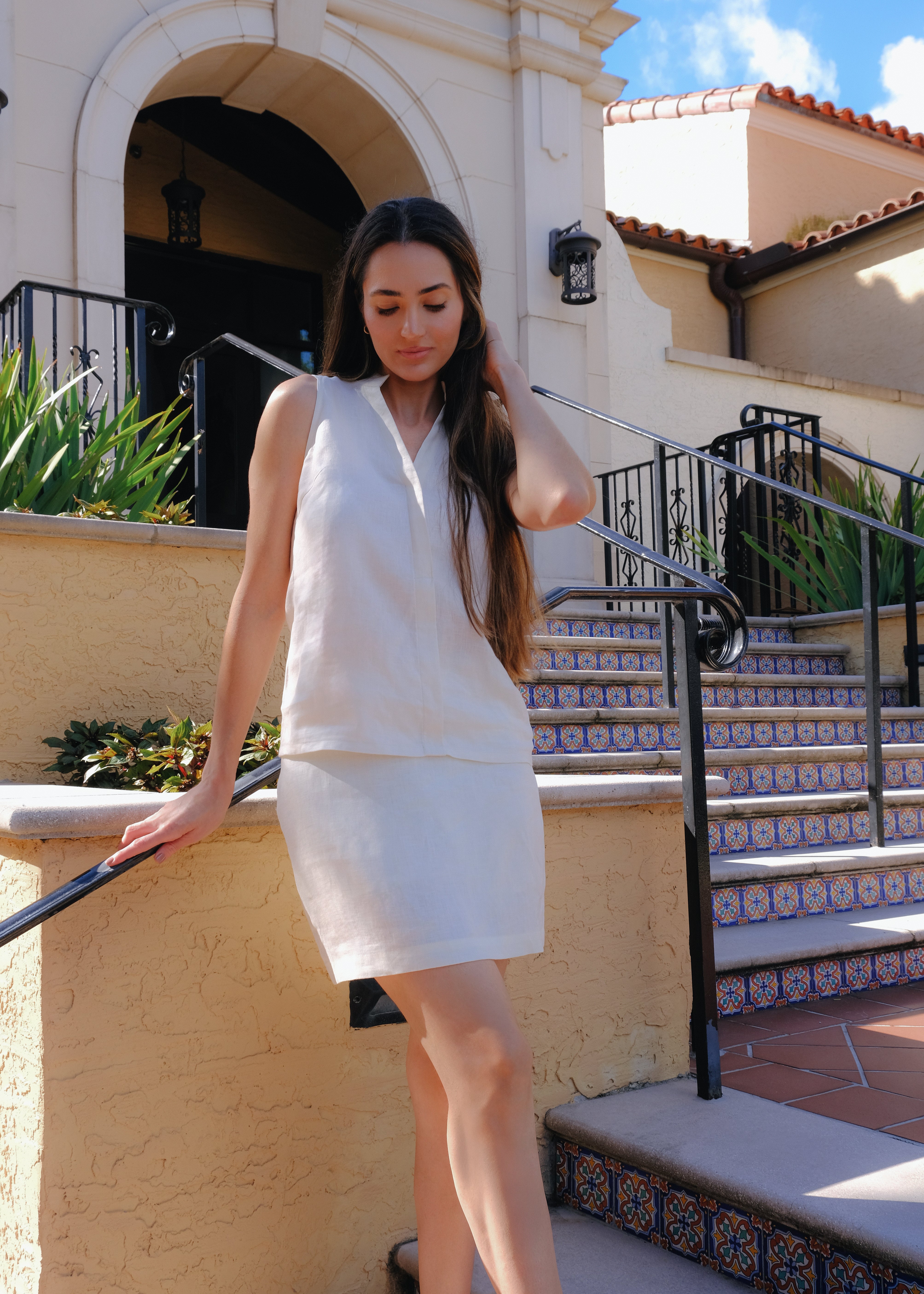 This classic staple linen skort can be worn with your favorite fall & winter jackets and cashmere cardigans all year long with plenty of comfort and breathability!