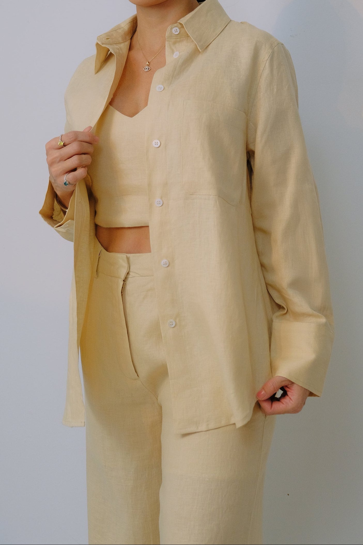 Designed from 100% breathable linen, this long-sleeve shirt transitions effortlessly from day to night. Wear it alone or together for a chic, coordinated look or mix and match with any of our tops and bottoms for endless outfit possibilities.