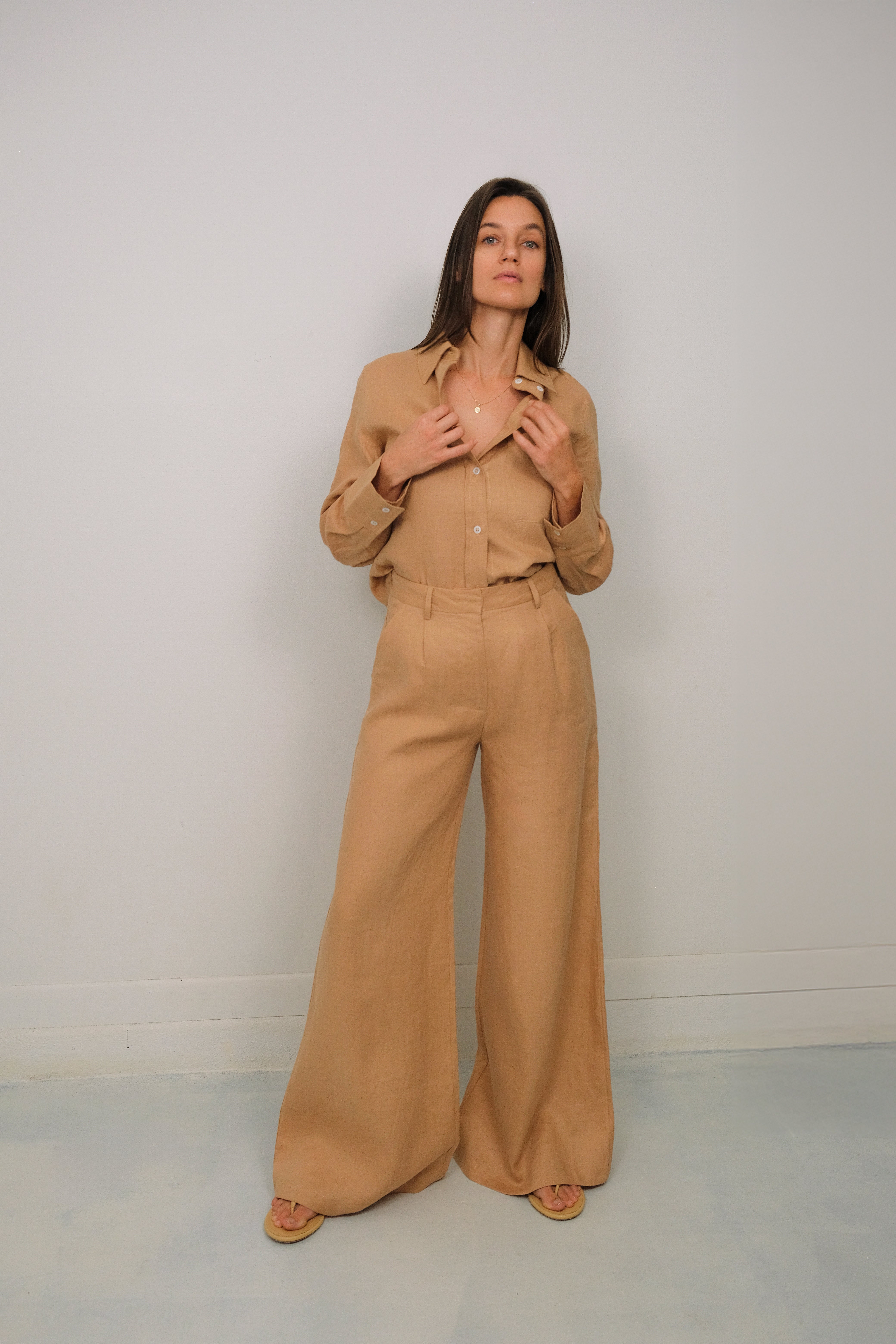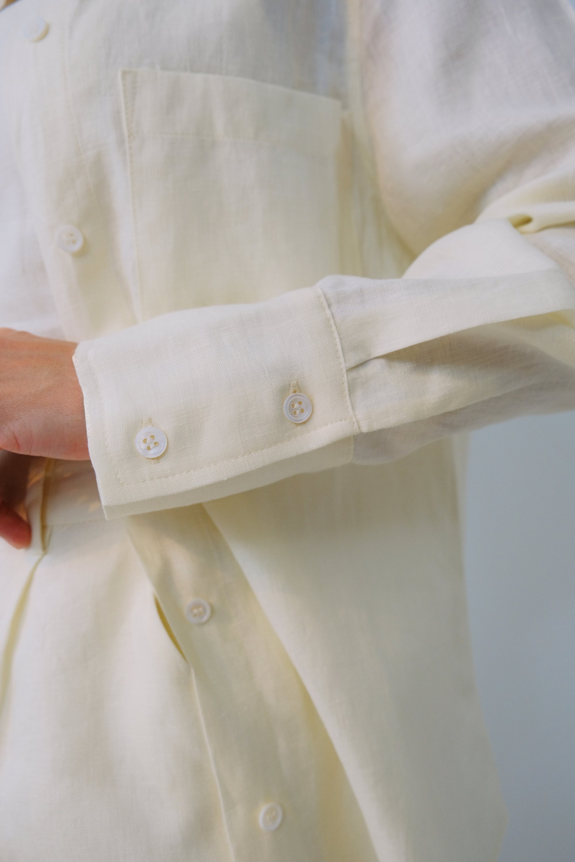 Our Classic shirt is made from 100% pure linen, a natural fabric with no stretch and made to have a slight relaxed and oversized look.