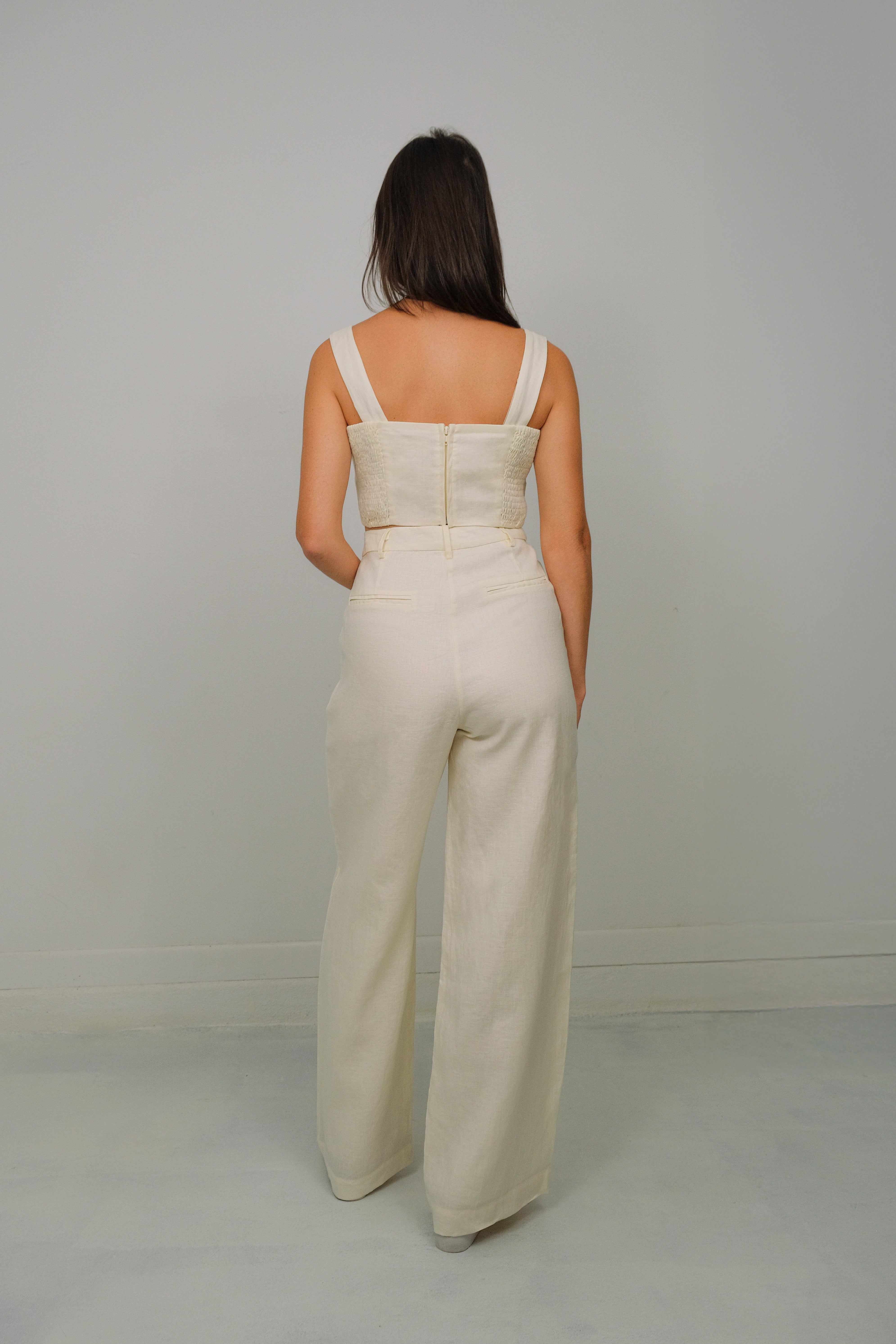 Shown here with the Isa Midi Crop top and the Classic Button Shirt.