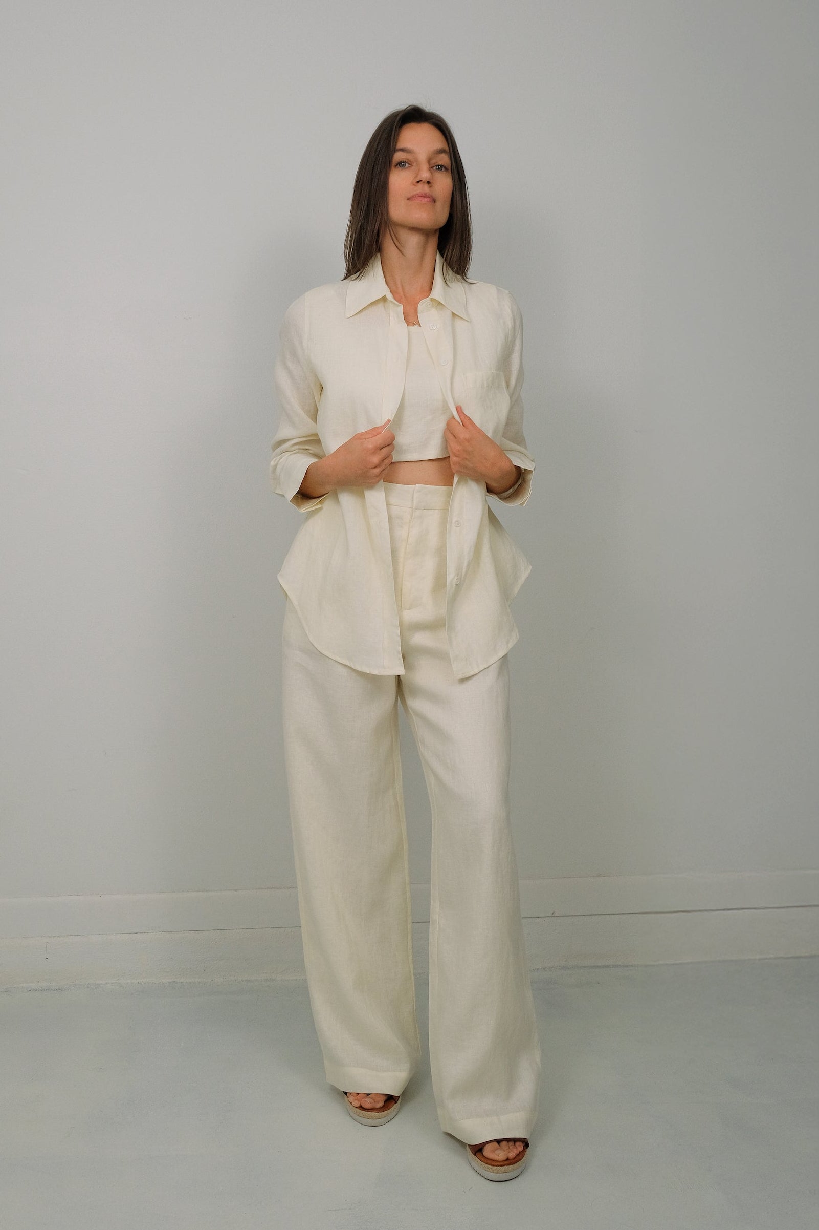 Mix and match all of the separates with any of our linen pants, short, skort & skirt. Layer with our Ava Linen Blazer and Oma Linen Trench Coat for cooler weather.