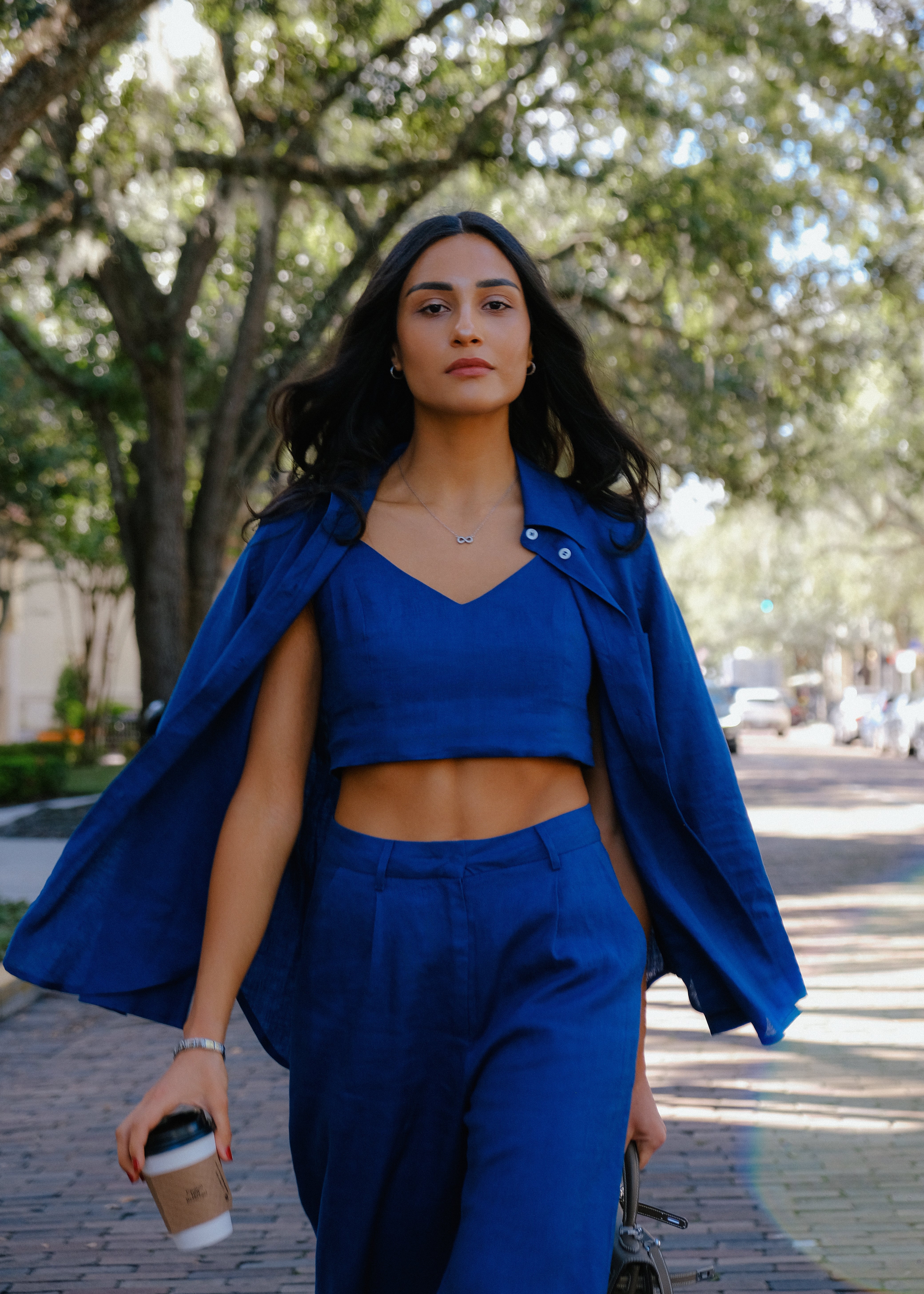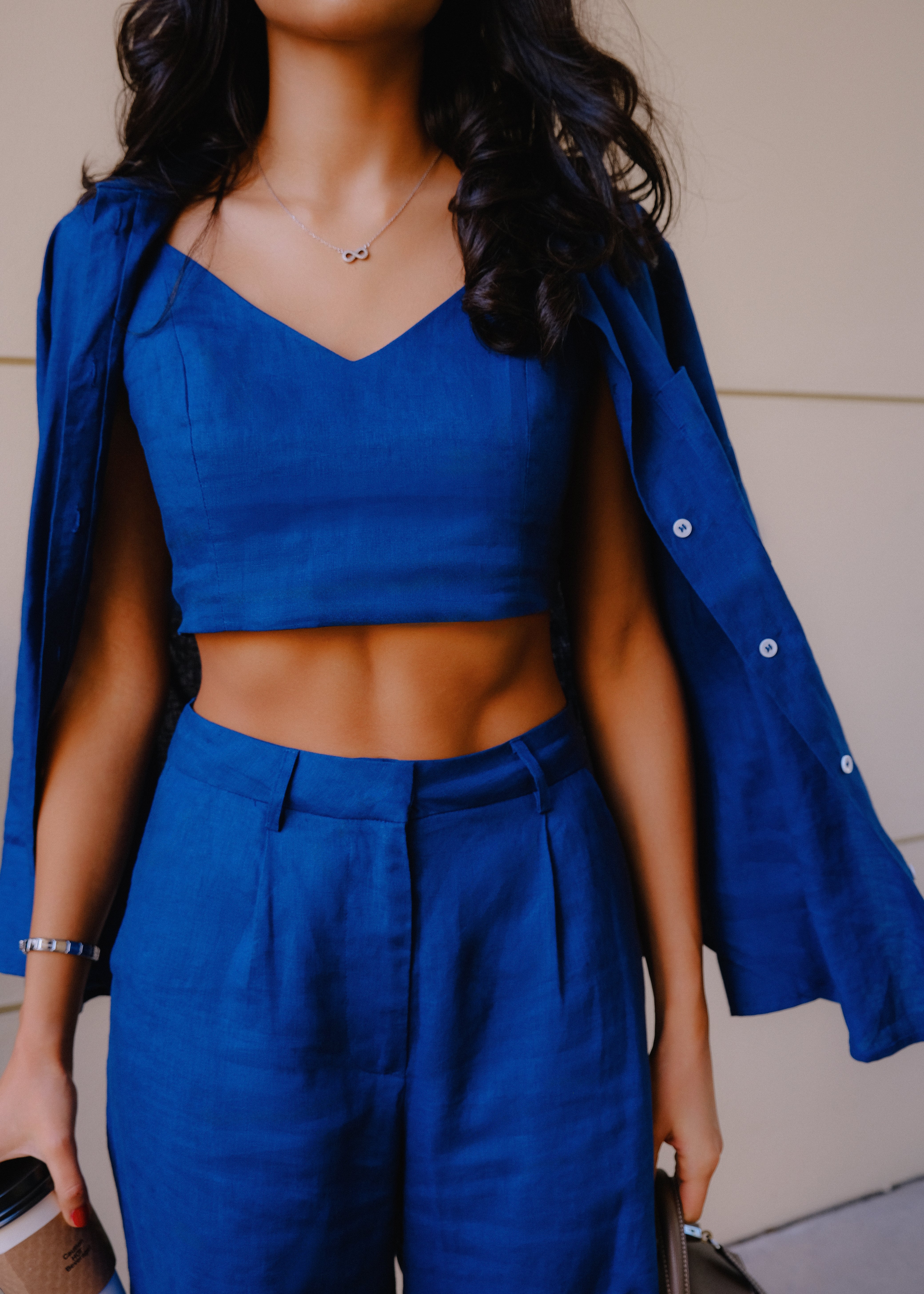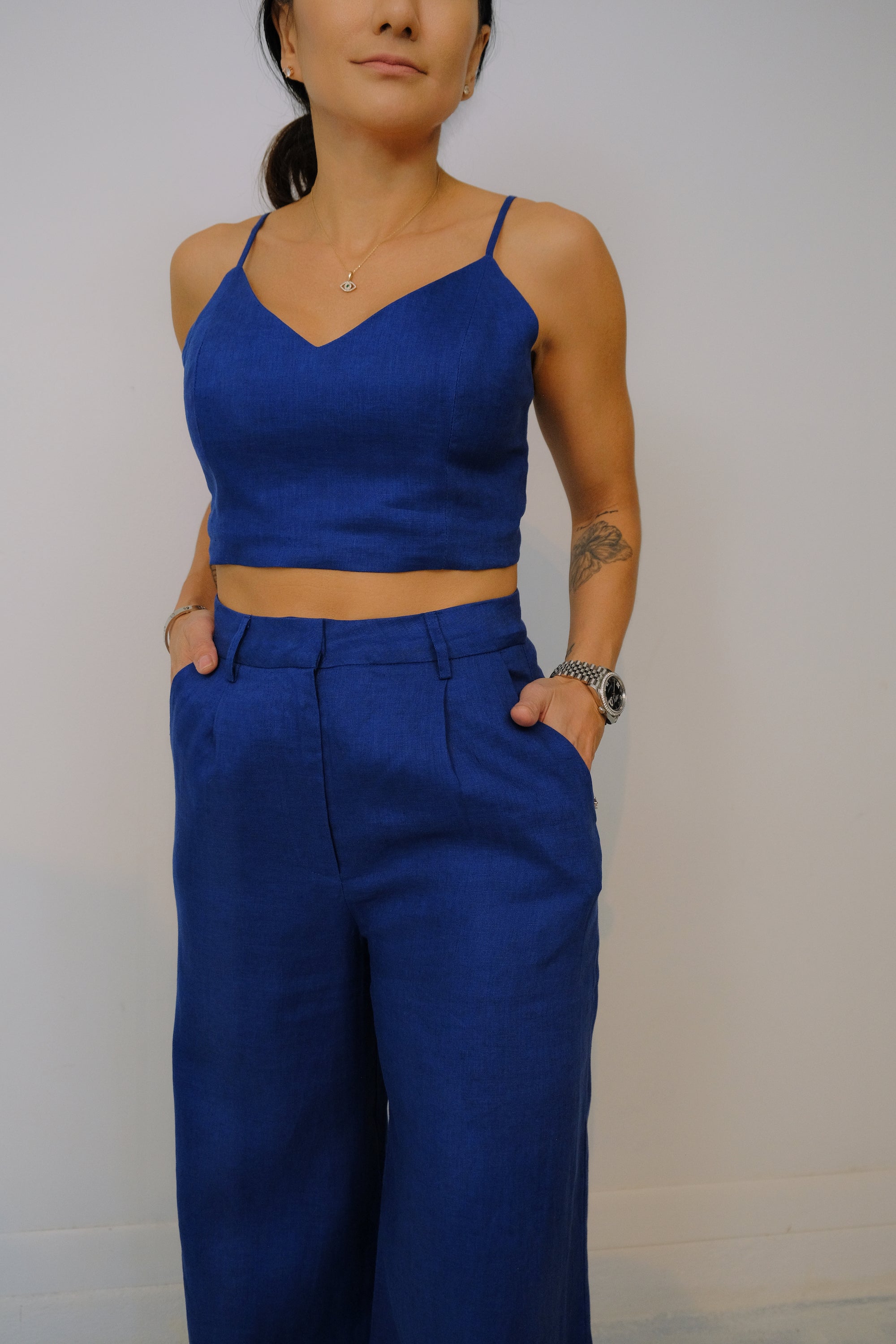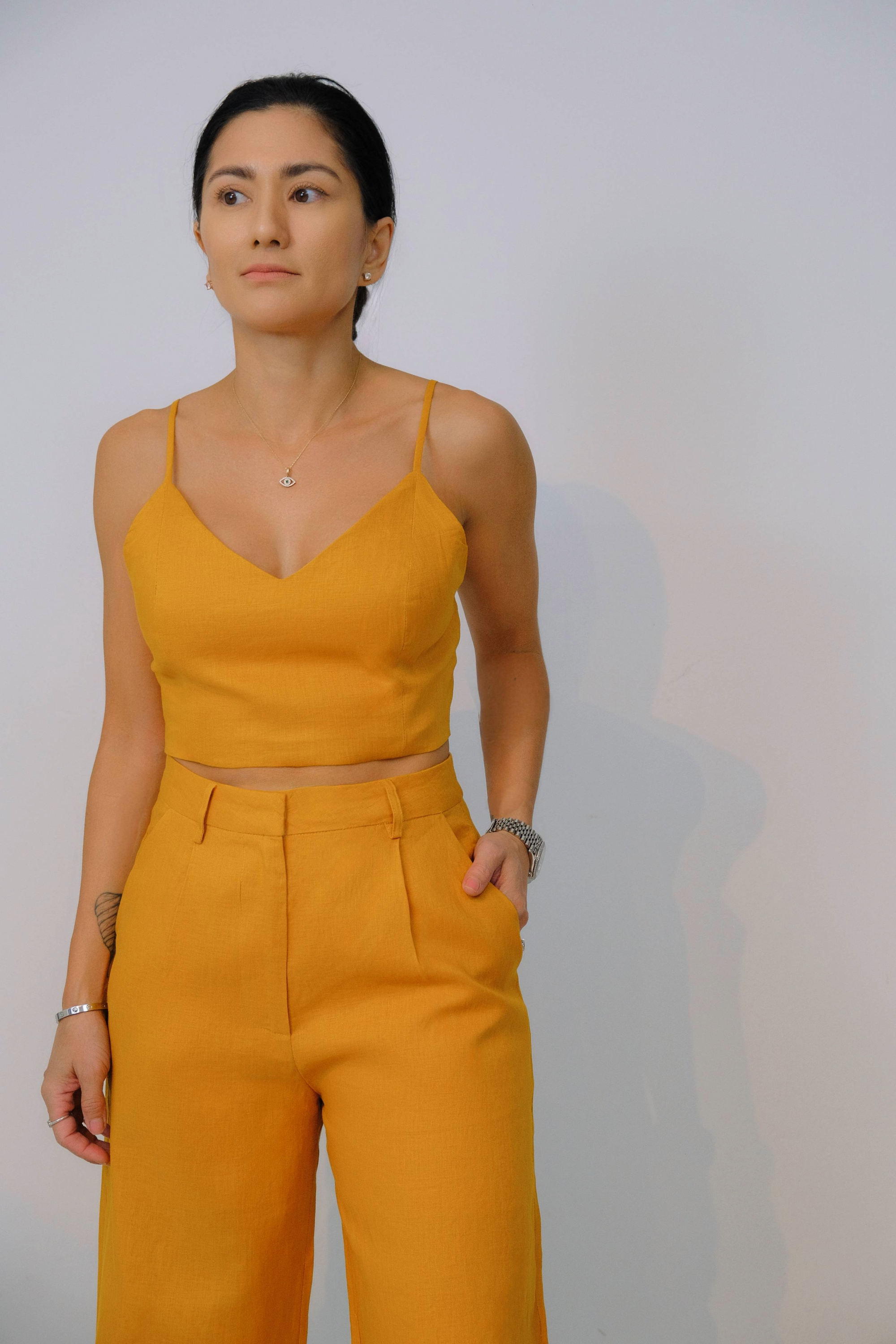 Our Kali V-Neck Linen Spaghetti Strap Crop Top was made to be the timeless elegant feminine got-to top.
